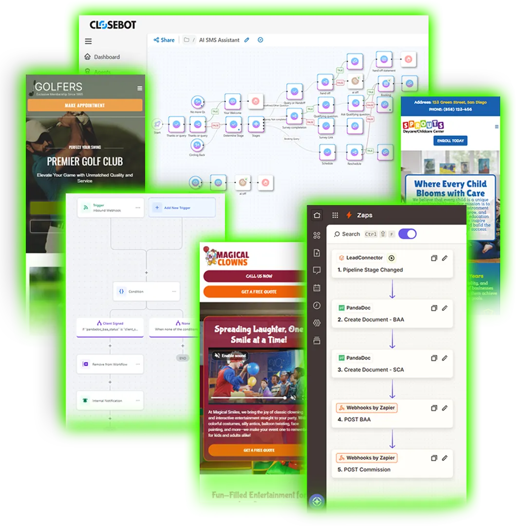 CloseBot.ai responses, Zapier webhooks, and GHL automation built for your process.