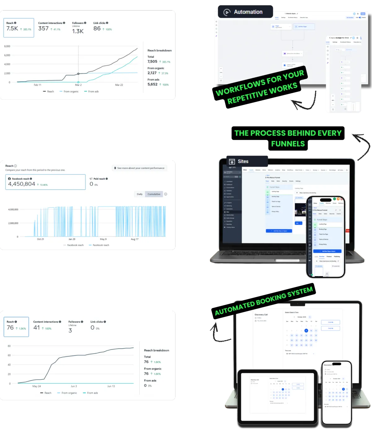 I design systems that never clock out, capturing leads, sending reminders, and converting visitors into booked clients while you focus on growth.